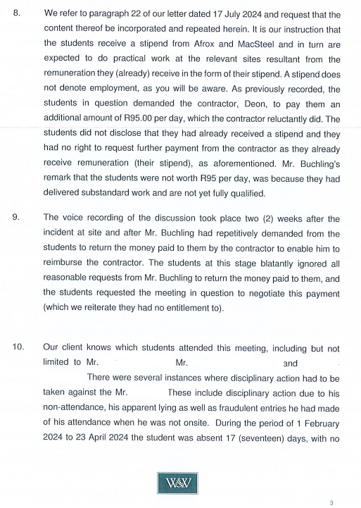 READ THE RESPONSE OF NIEL CLOETE OF WEAVIND AND WEAVIND INC. ON BEHALF OF PCD COLLEGE TO OUR MEDIA ENQUIRY ABOUT THE AUDIO. THIS PUBLICATION HAS OPTED TO PROTECT THE IDENTITY OF THE FORMER STUDENTS WRITTEN IN THE RESPONSE.